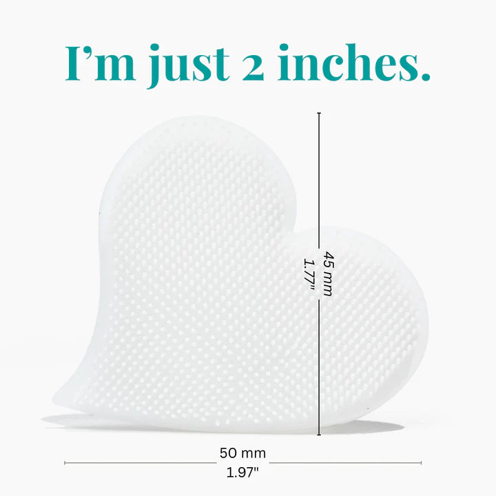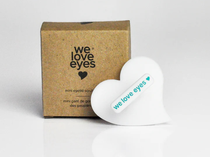 Gently scrub and exfoliate your eyelid area with our silicone, BPA free, anti-microbial mini scrub mitt. Pair with your favorite We Love Eyes foaming cleanser. Measures 50mm x 48mm.