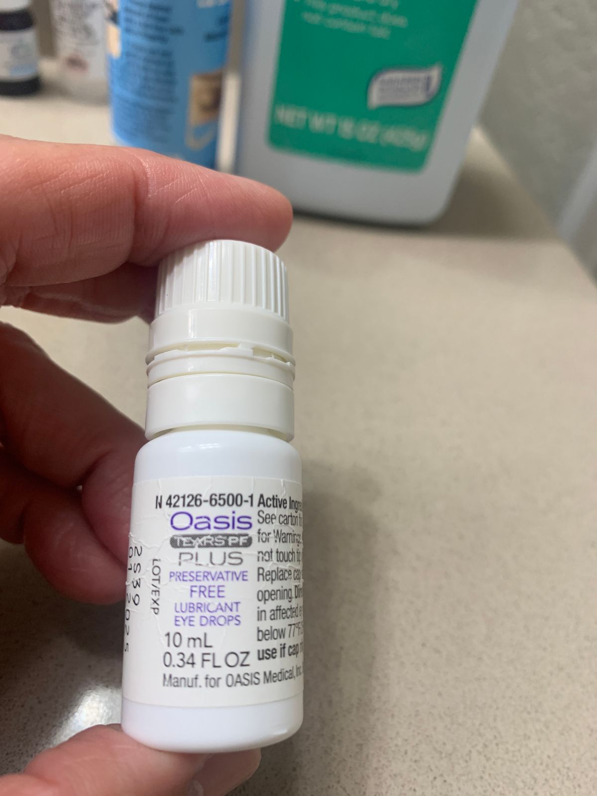 Oasis Tears Plus is the best eye drop I've tried so far. I've tried many. My eyes feel better, and I don't need to use use them as often as the others I've tried. The bottle is a little hard to get the drops out, but I still prefer it to the single use packaging. Keeping my eyes closed for a few minutes after I put the drops in helps my dry eyes a lot.