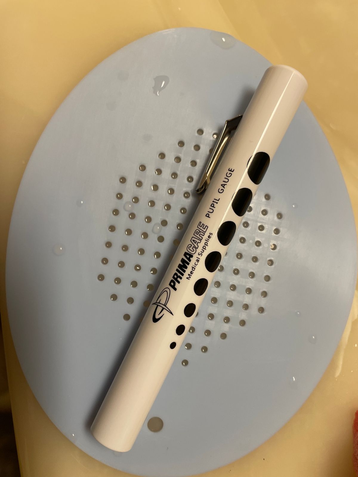 I added these to the shop because we've heard from many scleral lens users who find them handy for checking for bubbles. They're manufactured and sold for eye doctors, so they have a pupil gauge, but they're a practical tool for some of us as well.