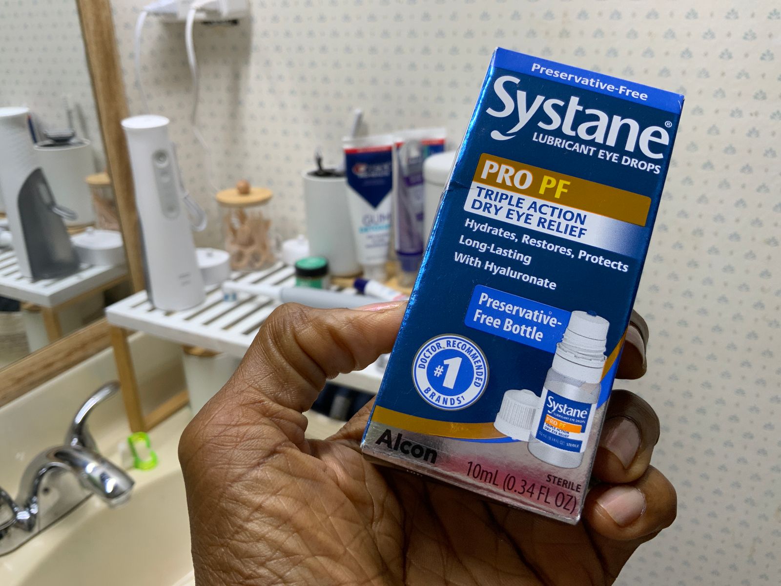 I was referred to both this site and product by my eye specialist. I love the way Systane Pro PF feels on my eyes and I don’t experience the dryness anywhere near as much as without. It’s cool against my eye, the tip of the bottle allows one drop and nothing is wasted. I also like that it’s not very expensive. The only thing I wish they made were individual ampoules instead of one bottle. With the samples I originally received, it was easy to take them with me and use when needed- that’s the only reason for my 4 instead of five stars.